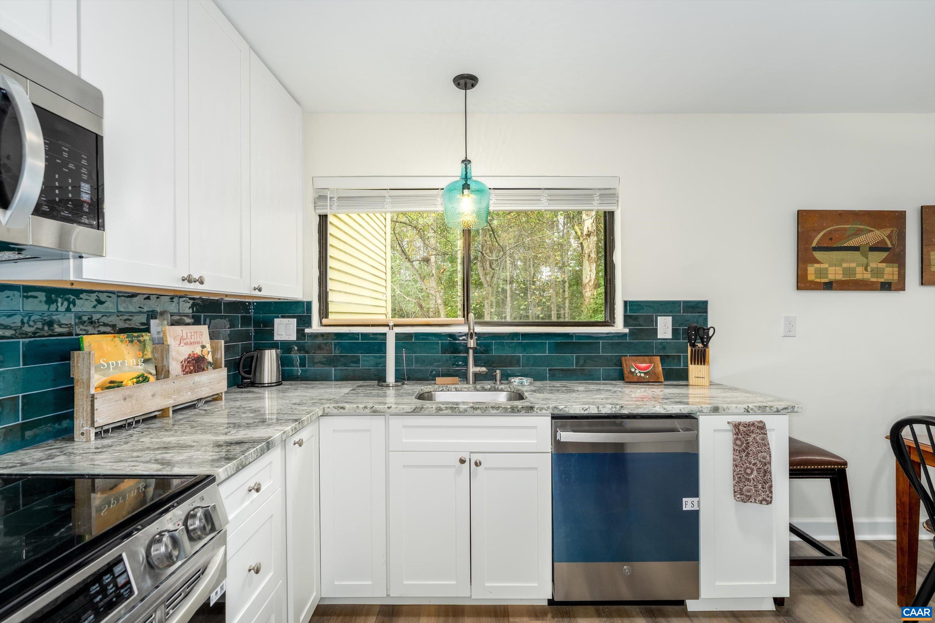 $5000 IN CLOSING COSTS offered on this RIVER RUN GEM with community pool and filled with light, completely renovated in a desirable community, cozy and charming place to work from home & relax. All new, including luxury vinyl floors with neutral decor, open concept with a cook’s delight kitchen, LG stainless steel appliances, granite counters, a home office or sitting area off the kitchen with sliding doors to a private deck to enjoy morning coffee. New ceiling fans with dimmers throughout the home. New wiring at all electrical outlets and switches. All appliances are 2025 ENERGY STAR. A nice separate utility room is downstairs with storage by the hallway and two light filled bedrooms. The primary bedroom is spacious with a walk in closet. Two gorgeous new bathrooms with new plumbing; the hall bathroom is great for guests. New roof in 2021. New 2025 HVAC and water heater. New 2025 smoke detectors throughout. New 2025 insulation materials to keep your electric bills low and for best sound barrier from neighbors. You can easily install a fence with HOA approval for a pet or for privacy. Amazing location being 5 minutes to Route 29, shopping, UVA, PVCC. Pen Park offers tennis & golf. Great rental investment for income.