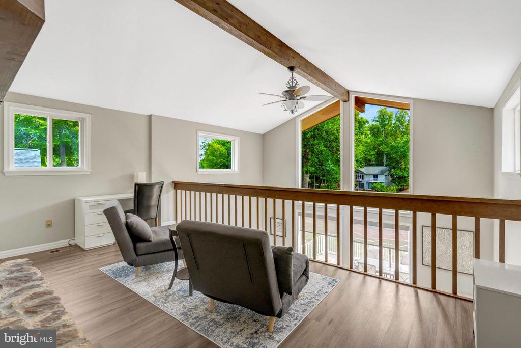Welcome to your move-in ready lakefront retreat””perfect as a forever home, weekend escape, or Airbnb investment! This stunning 4,000+ sq ft property offers 60 feet of private shoreline and has been thoughtfully updated with over $50,000 in improvements in the past three years. As you enter, you're greeted by wide-plank LVP flooring that flows throughout the home. To your left, a massive game room with wood-accent walls and a wet bar sets the stage for endless entertaining. The main level also features a full bath, a spacious bedroom with soaring 11-foot ceilings, and another bedroom that walks out to a covered porch leading to the expansive deck overlooking the water. The two-story family room is a showstopper with its wall of windows, dramatic stone accent wall, and cozy step-down wood-burning fireplace. The gourmet kitchen offers, stainless steel appliances, and a casual dining area, all perfectly designed to overlook lake views. A convenient main-level laundry room adds ease of living. Upstairs, a loft area with open sightlines to the family room below provides a perfect reading nook or office. The luxurious owner's suite is a true retreat, featuring cathedral ceilings, a spacious walk-in closet, and an adjoining sitting area